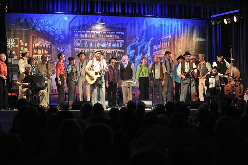 Von der Urbesetzung des Odenwälder Shanty Chors ist heute noch gut die Hälfte dabei. Hier ein Bild von einem Auftritt 2018 in der Alten Turnhalle. Foto: Dorn