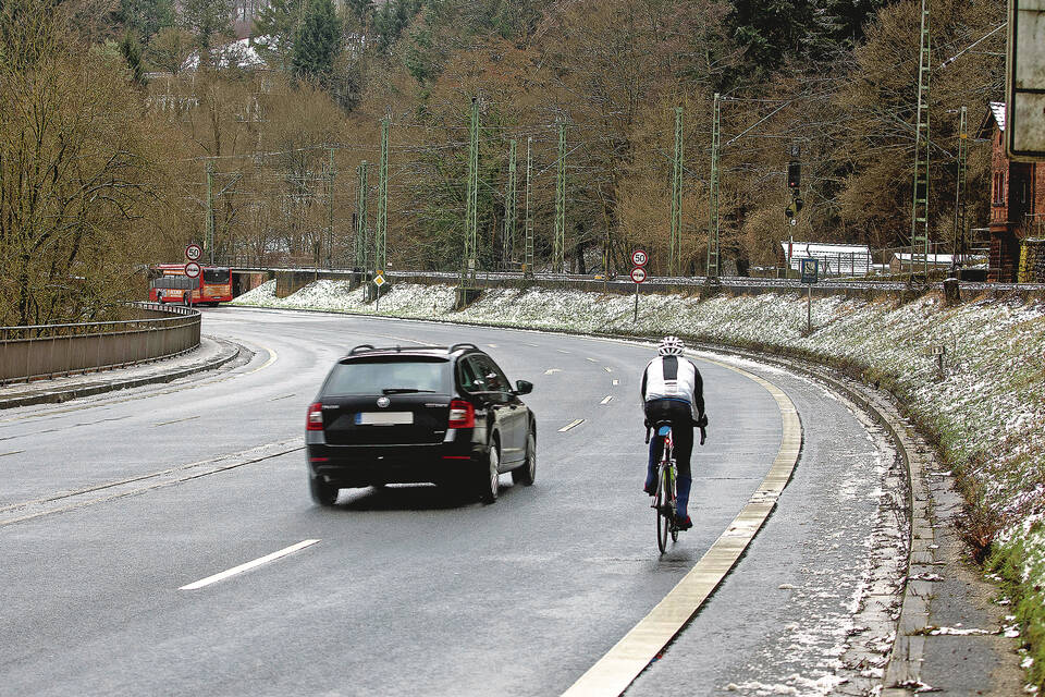 Neckargemünd/Heidelberg. (cm) "Es wird gebaut!", freute sich Bert-Olaf Rieck. Der Vorsitzende des regionalen Ablegers Rhein-Neckar/Heidelberg des "Allgemeinen Deutschen Fahrrad-Clubs" (ADFC) meinte damit die Radspur auf der Bundesstraße B37 zwischen Neckargemünd und Heidelberg. Mit dreitägiger Verspätung rückten hier am heutigen Donnerstag die Arbeiter an. Eigentlich hätte es bereits am Montag losgehen sollen, doch das Wetter war zu schlecht.