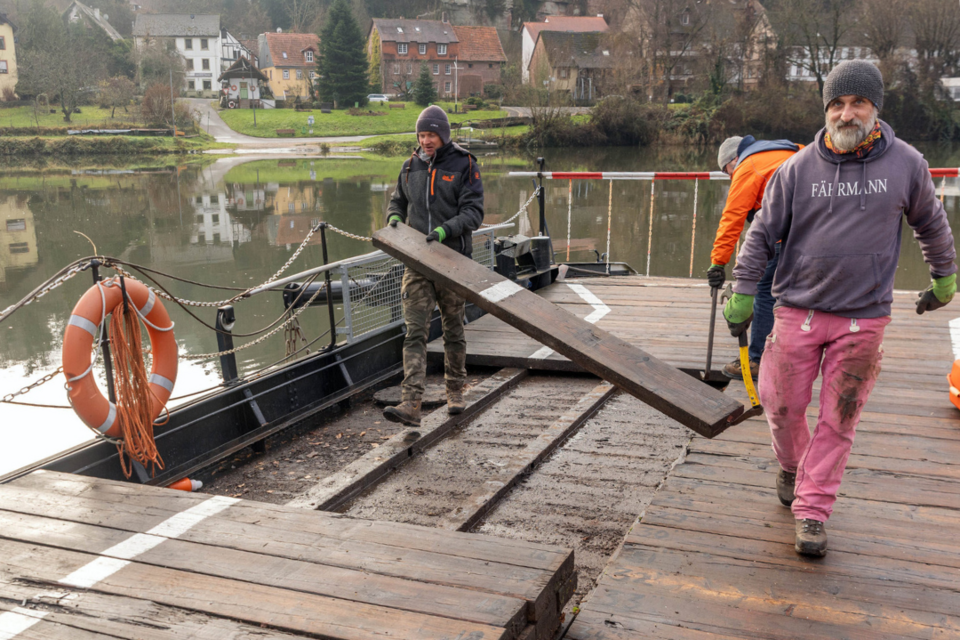 Die "Schwimmende Brücke" zwischen Neckarhäuserhof und Neckarhausen muss nach fünf Jahren zum Sicherheitscheck. Allerdings wird sie wohl noch vor Weihnachten wieder da sein.