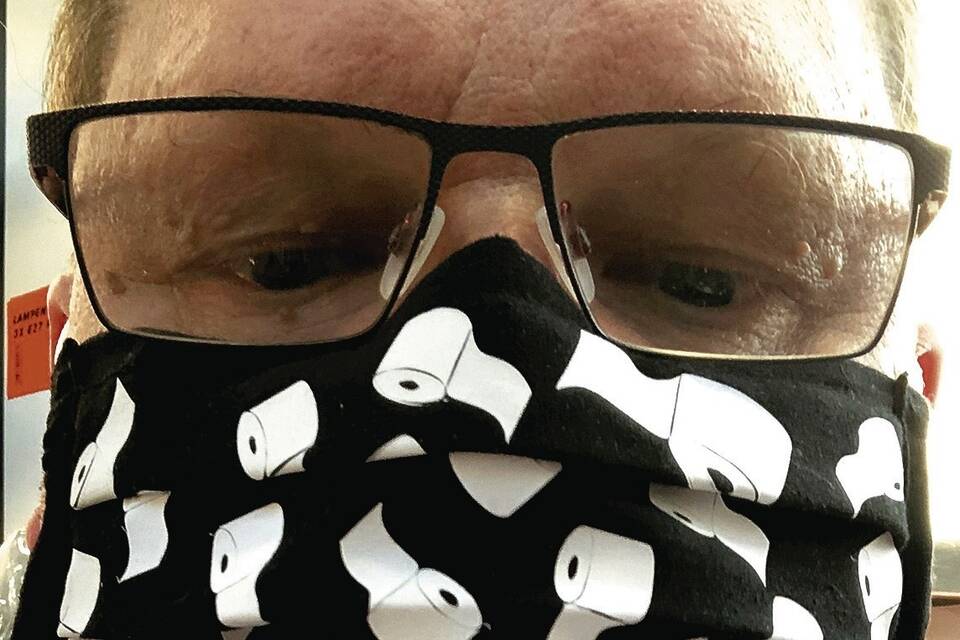Die Fotos beweisen: Die Maskerade ist Ausdruck von Kreativität und Improvisation, ist Ausdruck des Ich und auch der Fürsorge. Genäht wurden viele Masken für Töchter und Söhne, für Neffen und Nichten, für Partner, Freunde und Fremde. Cowboy-Look à la John Wayne findet sich ebenso vor Mund und Nase wie Designerkunst – mit und ohne Ironie. Totenköpfe schmücken den Schutz genauso wie Rollen von Klopapier, Vitamin C ebenso wie Fan-Bekundungen oder Botschaften gegen Fleischgenuss. Wobei letzterer mit angelegter Maske eher schwierig sein dürfte ...