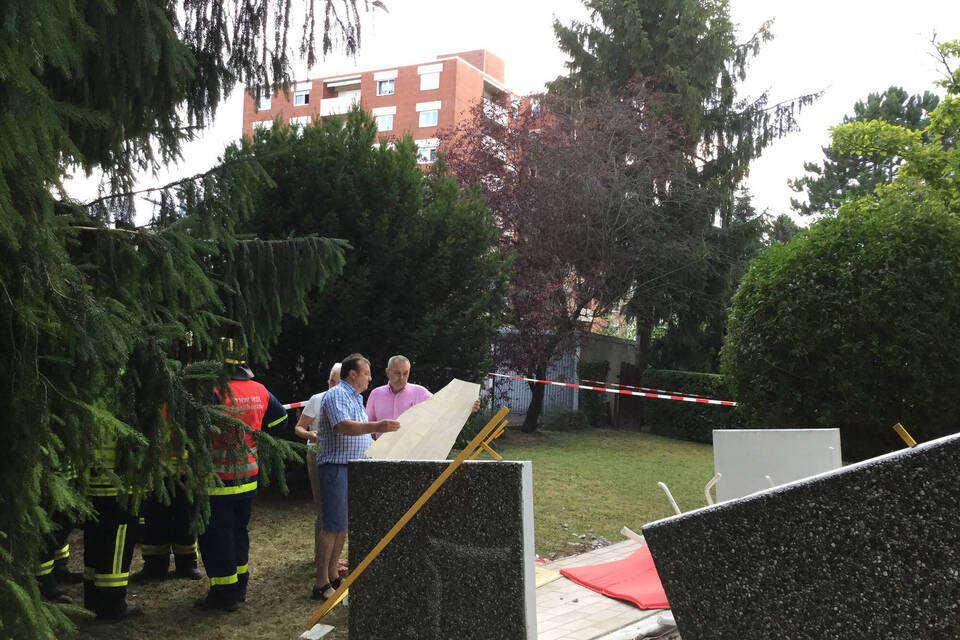 Als sie aus dem Fenster schaute, sah sie nur noch eine Staubwolke. Da hatte der Balkon von der Wohnung obendrüber schon den vor ihrer Tür mitgerissen. Ihr Mann Joachim, früherer Geschäftsführer bei den Maltesern und ehrenamtlicher Rettungssanitäter, schaute hinunter und sah den Nachbarn: mitten auf dem Trümmerfeld am Boden, in der Hocke, mit dem Kind im Arm. Er sei sofort mit dem Verbandskasten nach unten geeilt, habe erste Hilfe geleistet und die beiden beruhigt, so Leininger, der mit seiner Frau schon seit über 45 Jahren in dem Haus wohnt. Von außen sei nur eine Platzwunde zu sehen gewesen, Vater und Sohn waren ansprechbar.