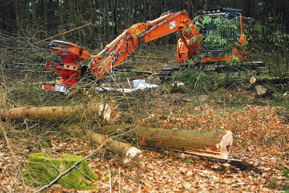 Der Holzvollernter im Einsatz: Die auserkorenen Flächen für die Windräder wurden bereits gerodet. Foto: Alex