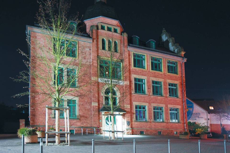 Normalerweise wird das Bammentaler Rathaus nachts angestrahlt - am Samstag war es länger unbeleuchtet als geplant.