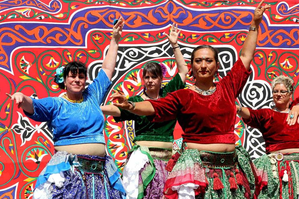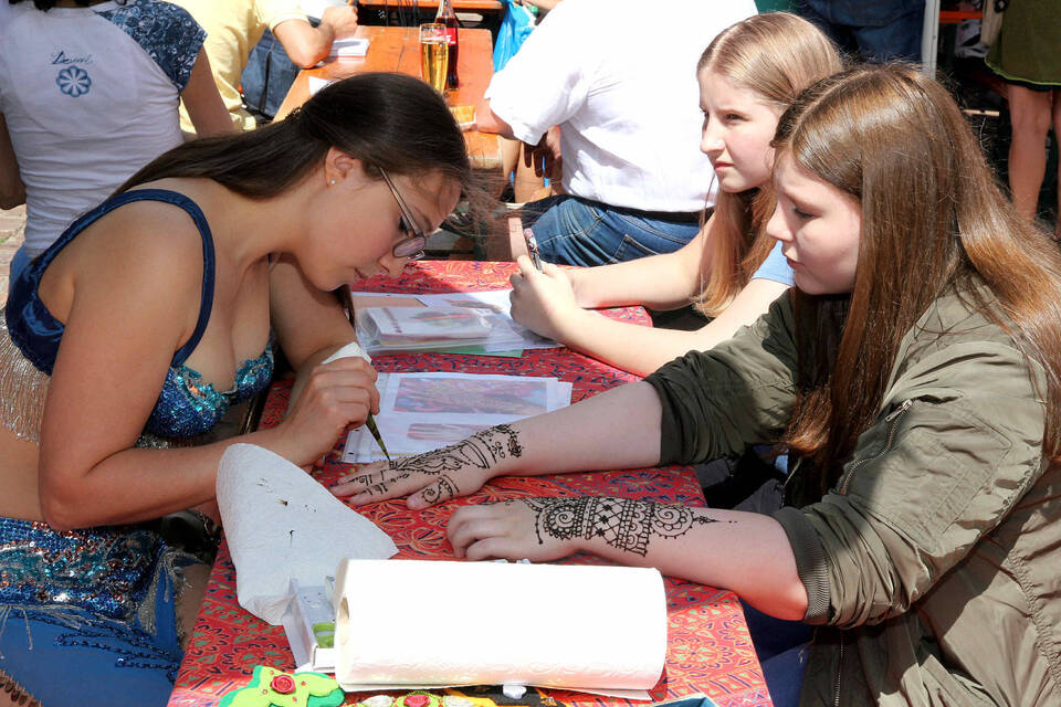 An der Schiffsanlegestelle willkommen geheißen wurden alle Gäste von der Band "Schiff and Co." der Neckargemünder Musikschule. Diese präsentierte sich mit ihren Rock- und Popsongs in Topform, wobei jedoch ein Lied wie "St. Pauli" von Jan Delay rein textlich nicht so ganz passte. Schließlich ist in diesem die Rede von einem Sendeschluss, dem man sich nähere. Aber in Neckargemünd ging es danach erst richtig los! Und zwar auf dem Marktplatz, der sich dank wunderbar anzuschauender Tanzgruppen, der entsprechenden, nicht minder wunderbaren Musik und leckerer arabischer Happen in genau das verwandelte, was Frank Volk so angekündigt hatte: "ein orientalisches Fest mit Bühnenprogramm, Bazar und orientalischer Atmosphäre wie in ‚Tausendundeiner Nacht‘".
