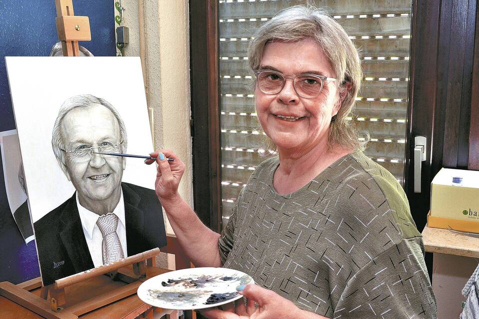 Brigitte Leskau überarbeitet derzeit das Porträt von Dieter Mörlein. Foto: Geschwill
