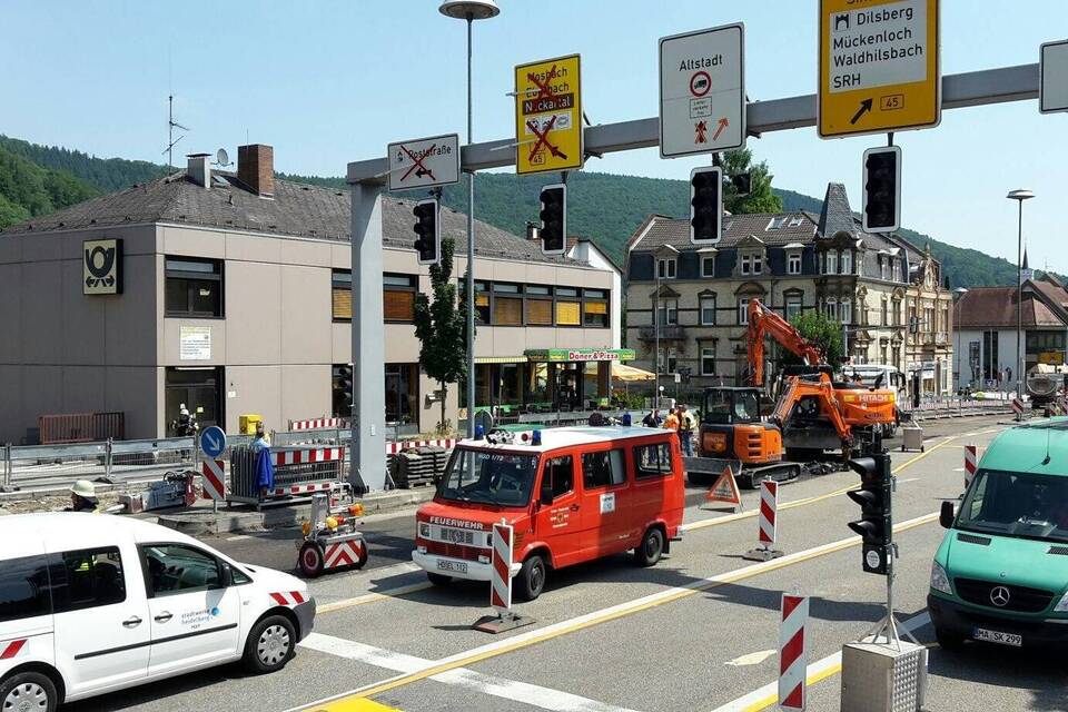 Zwischen Heidelberg-Schlierbach und Neckargemünd kam es zu einem Stau, in dem auch die Busse Standen. Der Autoverkehr wurde in Heidelberg-Schlierbach über die Brücke nach Ziegelhausen umgeleitet. Dort bildete sich ein Rückstau nach Heideberg bis zum Karlstorbahnhof. Aus dem Elsenztal kommend wurde der Verkehr in den Neckargemünder Altstadt-Tunnnel umgeleitet und von dort wieder nach Wiesenbach zurückgeführt. Heidelberg war aus Richtung Bammental nur noch über Gaiberg erreichbar. Zwischen Gaiberg und Leimen kam es ebenfalls zu einem großen Stau, berichten Verkehrsteilnehmer. Der Autoverkehr rechts des Neckars in Kleingemünd fließt, heißt es.