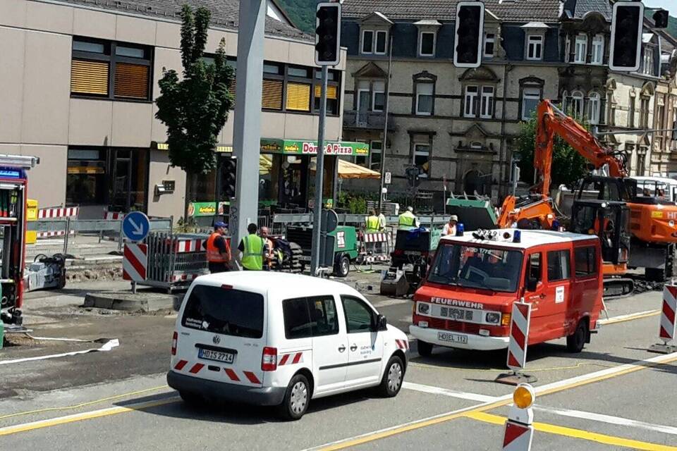 Bei den Arbeiten an der Baustelle B37/B45 in Neckargemünd hat am Vormittag ein Bagger eine Gasleitung beschädigt. Die Reparatur war laut Stadtwerke gegen 15 Uhr beendet.