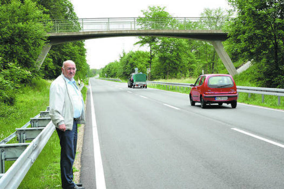Hier hat es geblitzt: Klaus K. aus Walldorf zeigt die Stelle an der Bundesstraße 291 im Hardtwald, an der die Stadt Leimen in ihrer Exklave Radargeräte aufgestellt hat. Foto: Fink