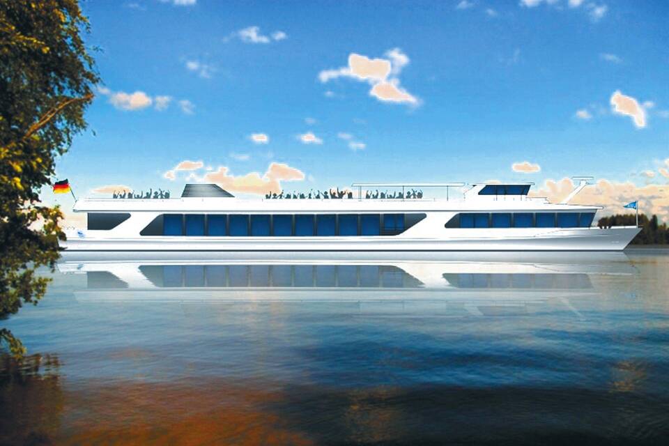 So soll es aussehen, das neue Flaggschiff der "Weißen Flotte": "Königin Silvia" soll Platz für 600 Personen bieten und ab Mai auf dem Neckar unterwegs sein. Grafik: Weiße Flotte