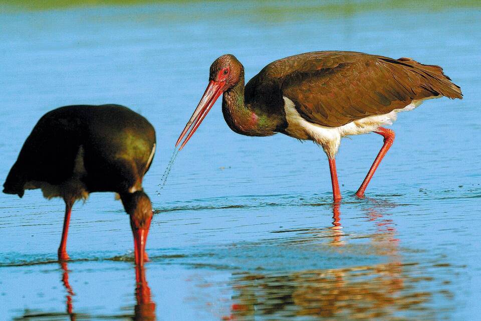 Nur noch rund 500 Schwarzstorch-Brutpaare gibt es in Deutschland wie hier in Bayern. Gefieder, Kopf und Hals sind schwarz. Foto: dpa