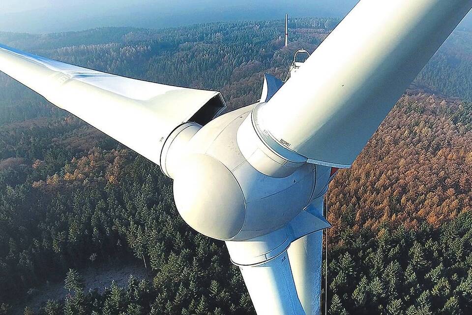Imposant: Hoch über den Baumkronen des Greiner Ecks sind die ersten Windräder fertiggestellt, die weiteren folgen bald. Foto: 3P Energieplan GmbH