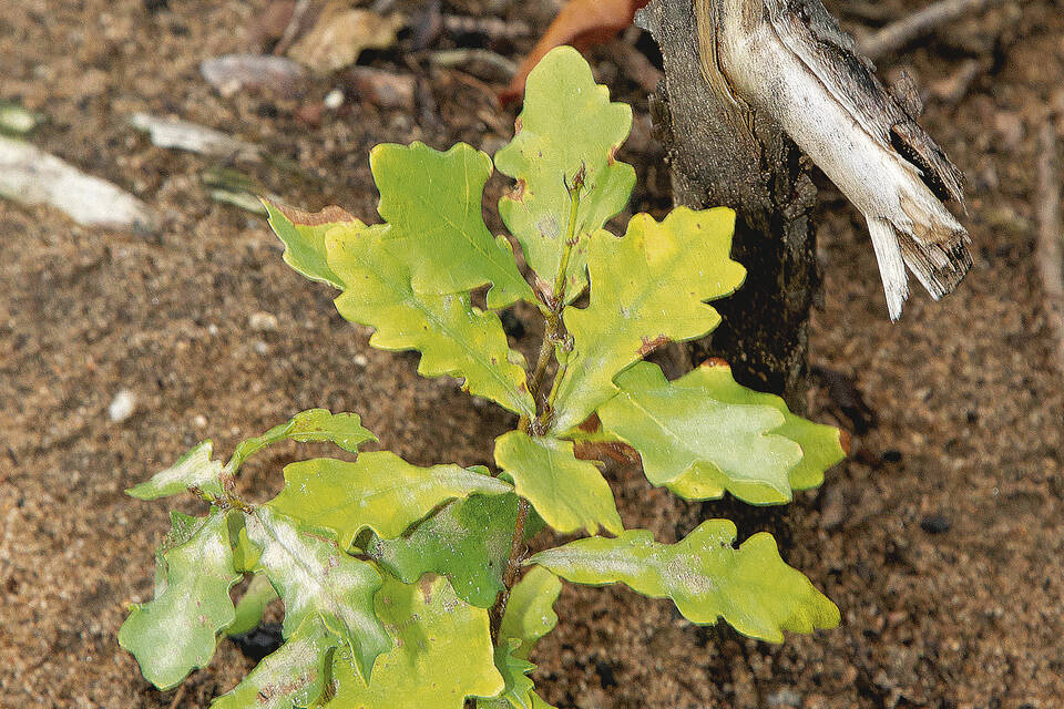 Gut 100 Kilogramm Eicheln hatte Revierleiter Lang damals bewusst in der Hopfengemeinde gesammelt: Dies sei wichtig, weil diese von Bäumen stammen, die den in Sandhausen typischen sandigen und trockenen Boden gewöhnt seien. Daraufhin wurden die Früchte des relativ langsam wachsenden Laubbaums auf jeweils etwa einem halben Quadratmeter großen Pflanzflächen verteilt. "Auf jeder dieser Flächen sind jetzt teilweise drei bis fünf Sämlinge angewachsen", zeigte sich Lang nun durchaus zufrieden. Diese seien derzeit bis zu 15 Zentimeter hoch.