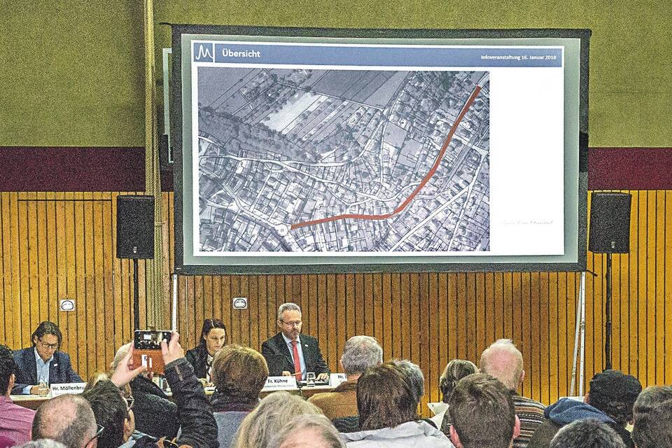 Die Verwaltungsmitarbeiter um Maik Brandt erläuterten die Baustelle vor 150 Zuhörern. F.: Alex