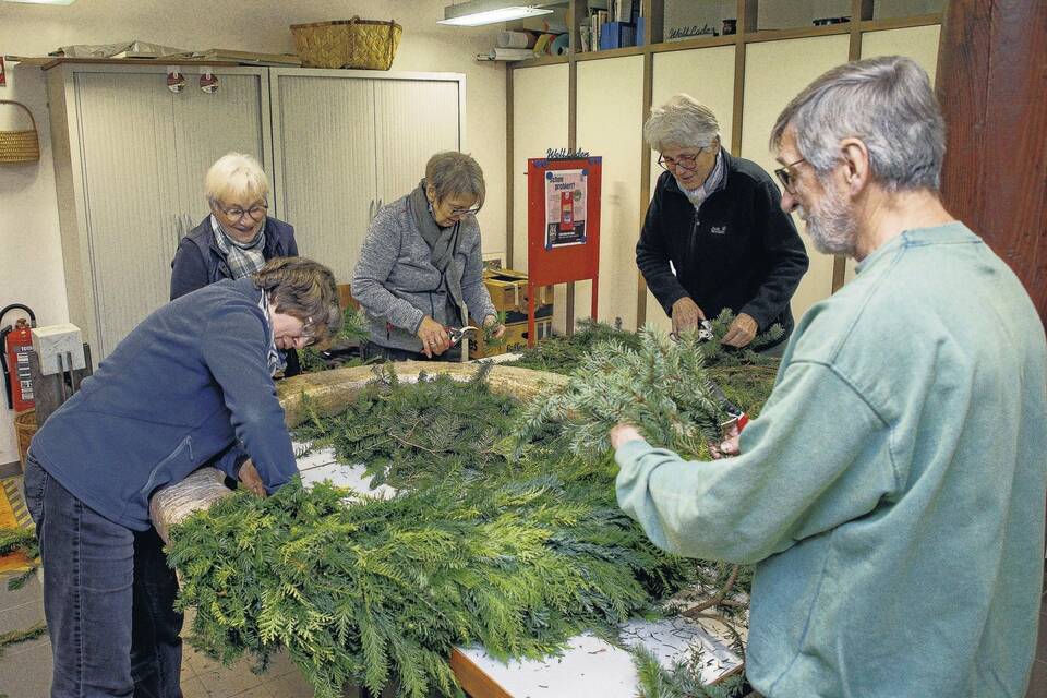 Der Kranz wird von Ehrenamtlichen selbst gebunden. Die Kerzen haben eine Bedeutung.