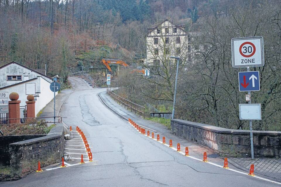 Als Sofortmaßnahme wurde die Fahrbahn verengt, um die Belastung durch den Begegnungsverkehr zu reduzieren.