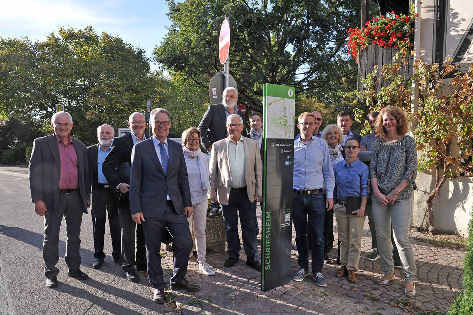 Schriesheim. (fjm) Vor zwei Jahren in Auftrag gegeben, seit Mittwoch Realität: 16 schwarz-grüne Stelen, zwei Infotafeln und zwei Hinweisschilder weisen Besuchern jetzt den Weg zu 14 Sehenswürdigkeiten und Einrichtungen in der Kernstadt.