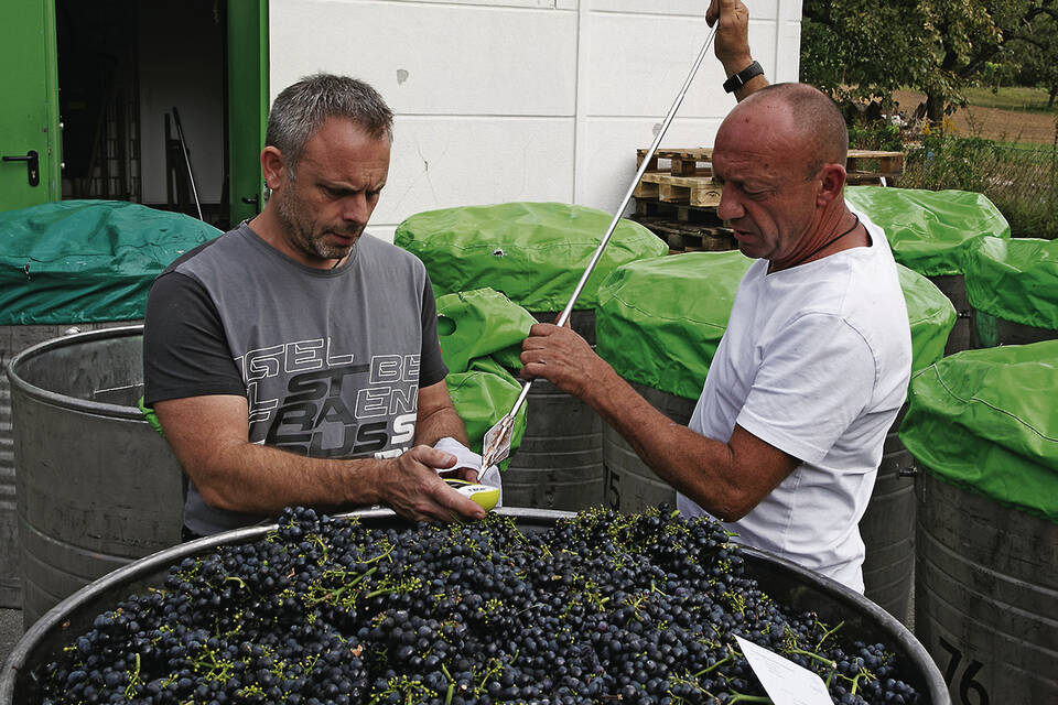 Deshalb versuche man, mit den Oechsle "etwas zu pokern" und "zumindest pari oder über dem Winzerkeller-Schnitt zu liegen". Aber mit Augenmaß. Denn irgendwann sei die Traube so reif, dass sie zwar an Oechsle zunehme, aber an Kilo verliere. "Wir müssen für unsere 120 Mitglieder das Beste rausholen", erläuterte Haas.
