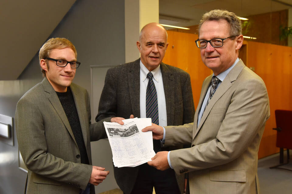 Sebastian Cuny und Axel Breinlinger übergaben die Listen an Hansjörg Höfer (v.l.). F.: Dorn