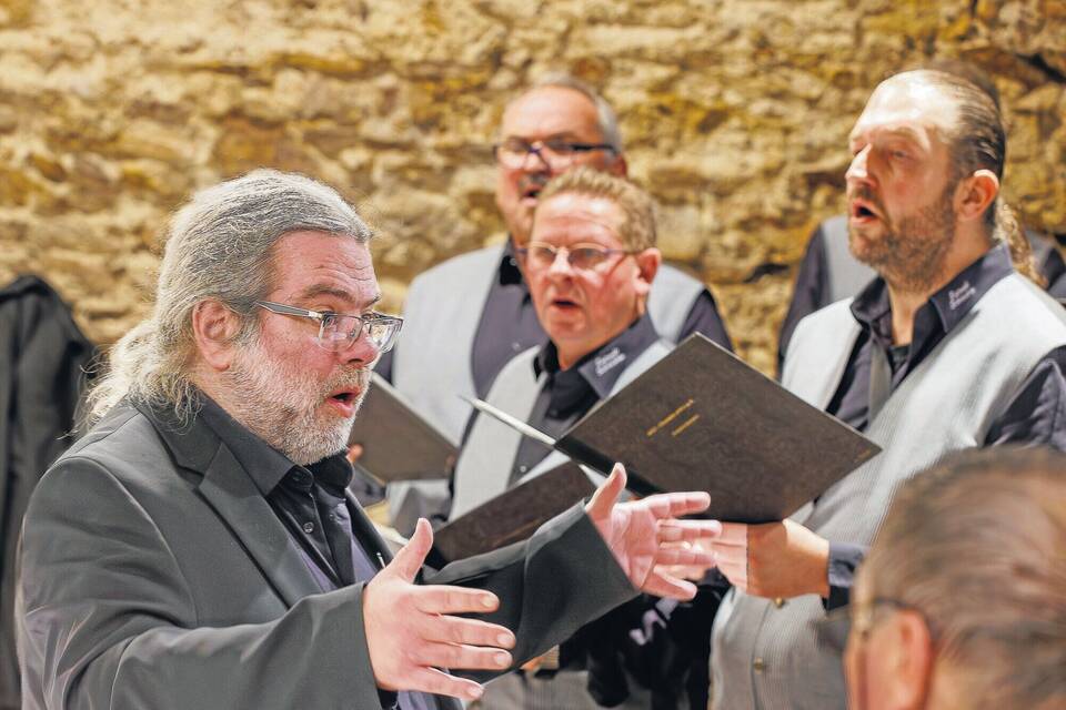 Schriesheim. (mio) Mehr als 30 aktive Sänger zählt der Männergesangsverein "Eintracht 1899 Schriesheim" – sechs Sänger mehr als im vergangenen Jahr. Zum 25. Jubiläum ihres Dirigenten Hans Kaspar Scharf standen sie nun für das Konzert "Chorfreude pur" vor 200 Gästen auf der Bühne des Zehntkellers.