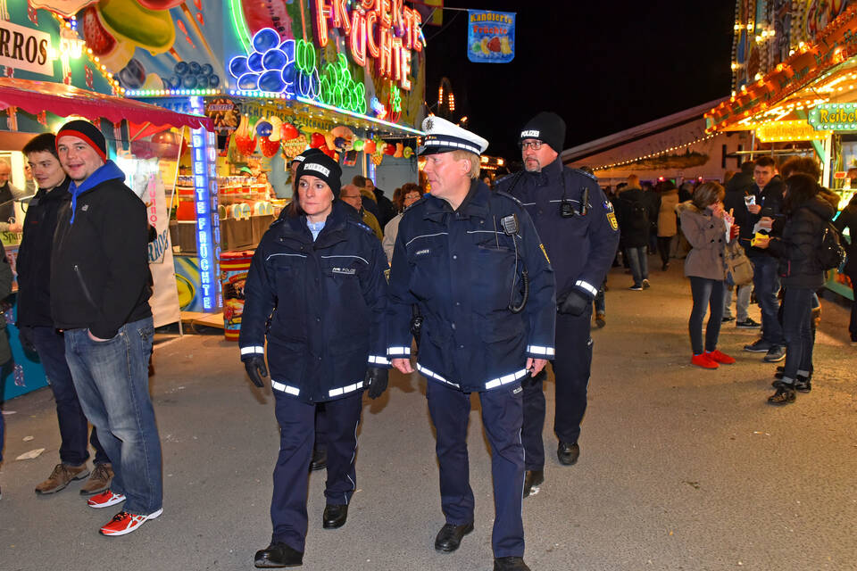 Polizeikräfte patrouillieren über den Mathaisemarkt. Foto: Dorn