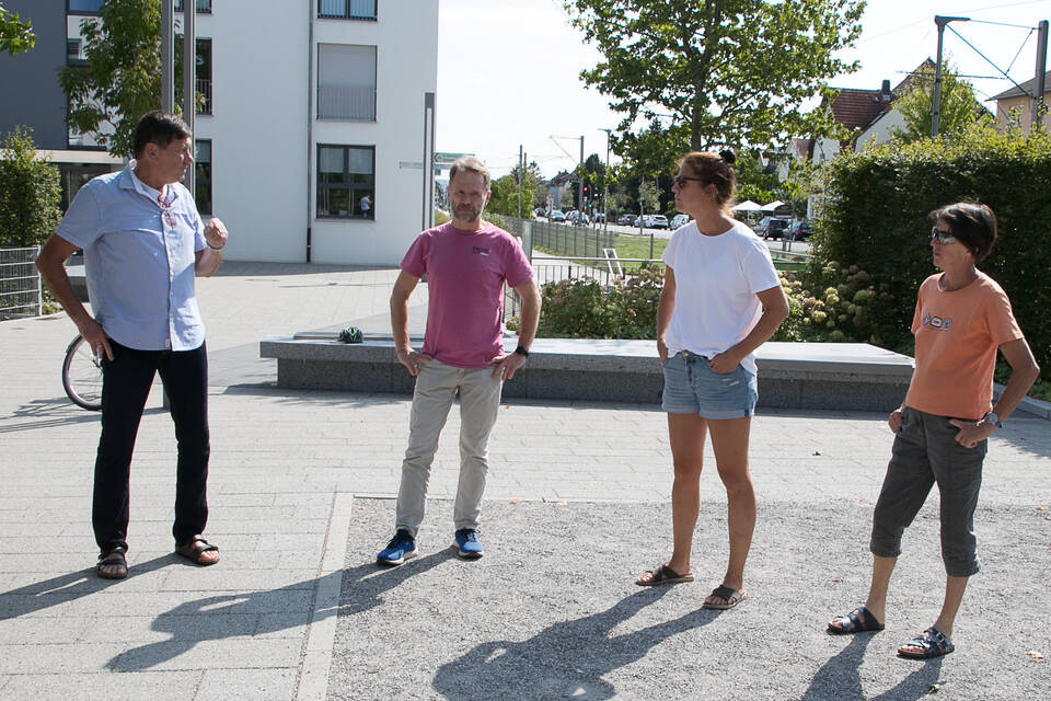 Dann ging’s weiter zum neu gestalteten Raiffeisenplatz. Seine Namensgebung, weg von "Schillerplatz-Nord" hin zur Reminiszenz an den früheren Standort des Raiffeisenmarktes und den Sozialreformer Friedrich Wilhelm Raiffeisen, verdankt der gut genutzte Platz Ideengeber Altgemeinderat Friedrich Ewald und der Hartnäckigkeit Hegmanns.