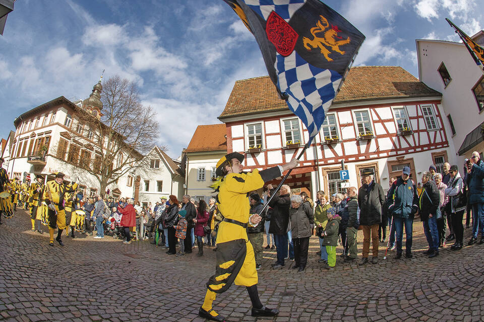 Die weiteste Anfahrt hatte das gute Dutzend Landsknechte aus dem sauerländischen Halver. Die hatten sich um 6 Uhr auf den Weg nach Schriesheim gemacht, wie Brigitte Lohmann berichtet: "Erst waren wir wegen des Wetters skeptisch. Aber sie weiß, woran der Sonnenschein am Mittag lag: "Wenn Engel reisen! Wir bringen immer gutes Wetter mit!" Lohmann ist nicht zum ersten Mal dabei – und sie mag die Bergstraße "Hier ist es immer schön, die Atmosphäre ist gut." Dass es nicht wie früher ein Wertungsspielen gibt, kann sie verschmerzen: "Ein Wettstreit wäre schwierig, durch Corona haben wir Mitglieder verloren."