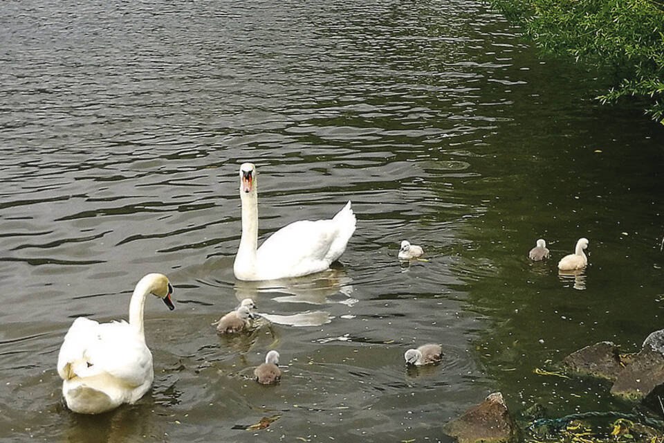 Auch Ralf Krätschmer, der Nelli und Nelson seit Jahren begleitet, hat entsprechende Beobachtungen gemacht: Er berichtet von einem stolzen Schwanenpaar, das er am Kleingemünder Ufer mit sechs Küken sah. "Zu meiner Überraschung zog ein Schwan mit seinem Schnabel ein siebtes Junges aus seinem Gefieder, das die ganze Zeit als blinder Passagier mit gefahren ist", so Krätschmer, der sich fragt: "Ist womöglich auch Nelson hier der Erzeuger?"