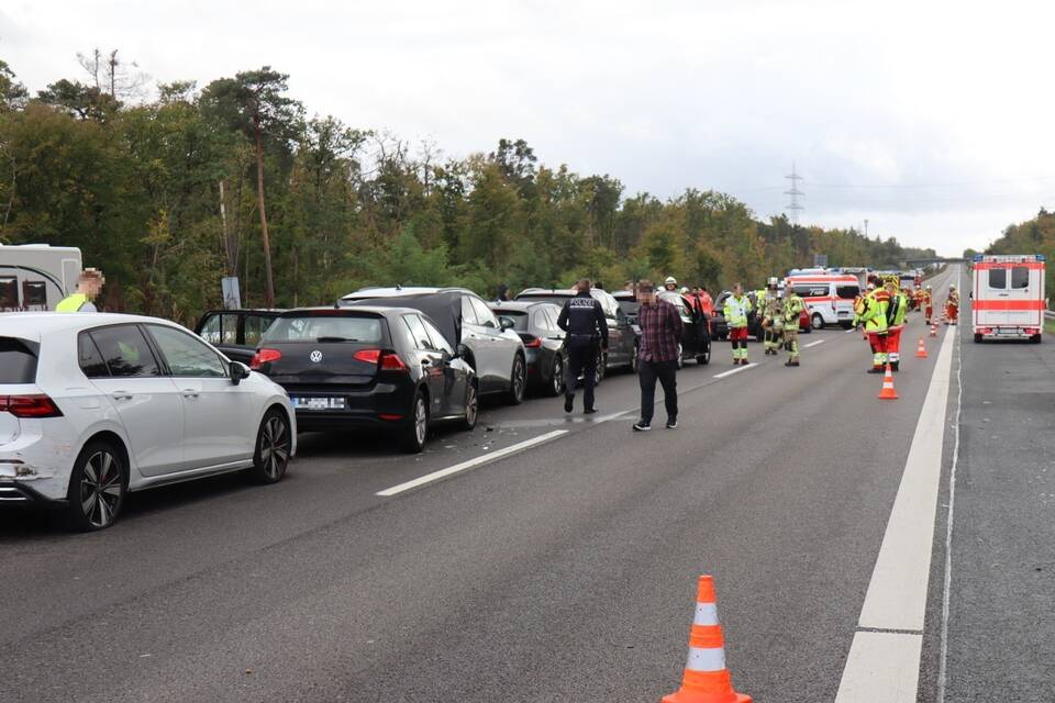 A5 bei Sandhausen. (pol/pri/rl) Voll gesperrt wurde die Autobahn A5 nach einem Unfall bei Sandhausen am heutigen Sonntagnachmittag. Gegen 12.30 Uhr sollen dabei zwischen der Raststätte Hardtwald und dem Kreuz Walldorf mehrere Fahrzeuge in Fahrtrichtung Karlsruhe miteinander kollidiert sein. Ersten Informationen zufolge waren acht Fahrzeuge mit 19 Insassen beteiligt. Es soll neun Verletzte gegeben haben.