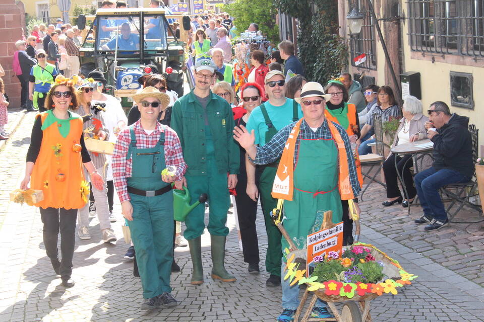 Ein Stammgast beim Sommertagszug ist der Obst- und Gartenbauverein, der einen Frühlingswagen mit blühenden Pflanzen und Sträuchern durch die Altstadtgassen fuhr. Der größte Ladenburger Sportverein, die LSV, präsentierte sich als Mehrspartenverein. In diesem Jahr waren die Handballer an der Reihe, die Handball als eine generationenübergreifende Sportart vorstellten. Und die Kleingärtner freuten sich auf die bald beginnende Saison. Fröhlich ging es ebenfalls auf dem Sängerwagen des Liederkranzes zu, dessen Mitglieder unter anderem die altbekannten Sommertagslieder mitsangen. Der Kaninchen- und Geflügelzuchtverein holte seine tierischen Freunde aus den Ställen. Mit dabei war auch die Kolpingfamilie, die sich als fröhliche Gärtner präsentierten.