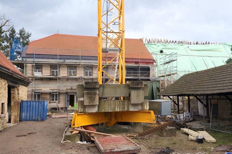 Ein saniertes Dach der Kramer-Mühle wurde geöffnet, um einen Aufzugschacht einzusetzen. Der Ortsbaumeister erklärt die Gründe.