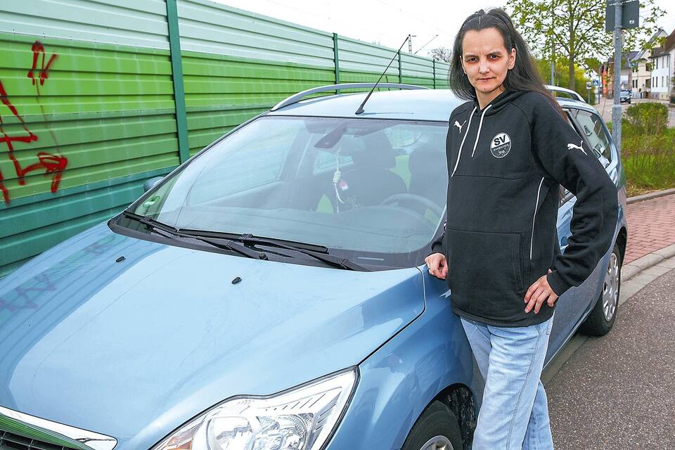 Daniela Bartel vor dem Ford eines Bekannten, den sie gerade fährt: "Mit meinem VW Polo wäre ich nicht hinterher gekommen", schmunzelt die 38-jährige Leimenerin. Foto: Alex