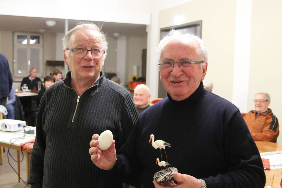 Und so bezog Keim den Altbürgermeister in seinen mit zahlreichen Fotos illustrierten Vortrag über die Entwicklung der Störchepopulation in Walldorf mit ein. Der 78-Jährige berichtete, dass es einst zwischen Walldorf und Sandhausen einen großen See gegeben habe, den Leimbachsee. Mit der Zeit sei dieser durch Wasserentnahme immer kleiner geworden. "Ich kann mich an die Zeit erinnern, als es noch Feuchtwiesen gab und der Storch zum alltäglichen Bild gehörte", sagte Keim, der Gründungsmitglied der Nabu-Ortsgruppe ist. Er selbst sei hier nach dem Krieg noch Schlittschuh gelaufen.