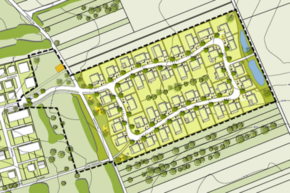 Auf etwa vier Hektar sollen Einfamilienhäuser entstehen. Die Vermarktung kann wohl 2024 beginnen.