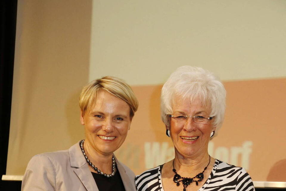 Auszeichnung für ehrenamtliches Engagement: Bürgermeisterin Christiane Staab (li.) gratulierte Karin Hornig. Foto: Pfeifer