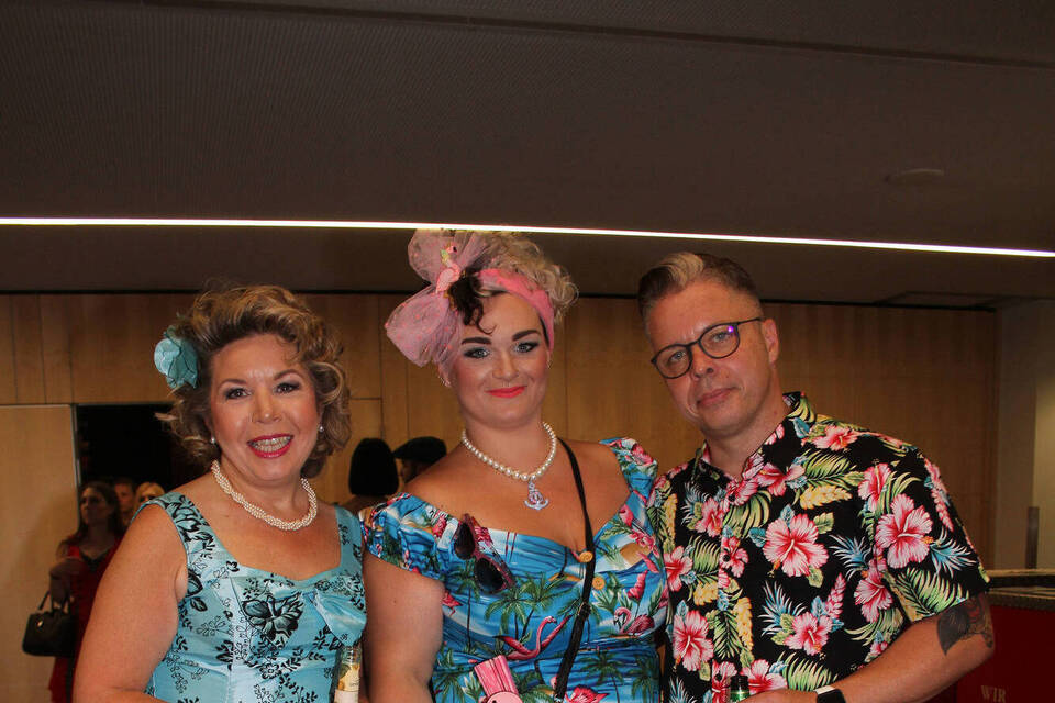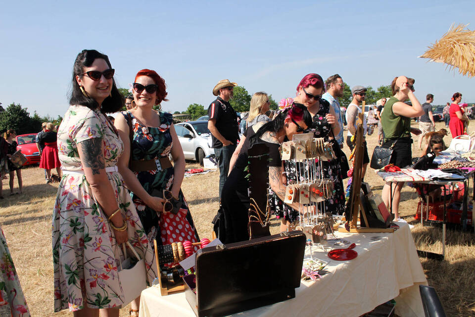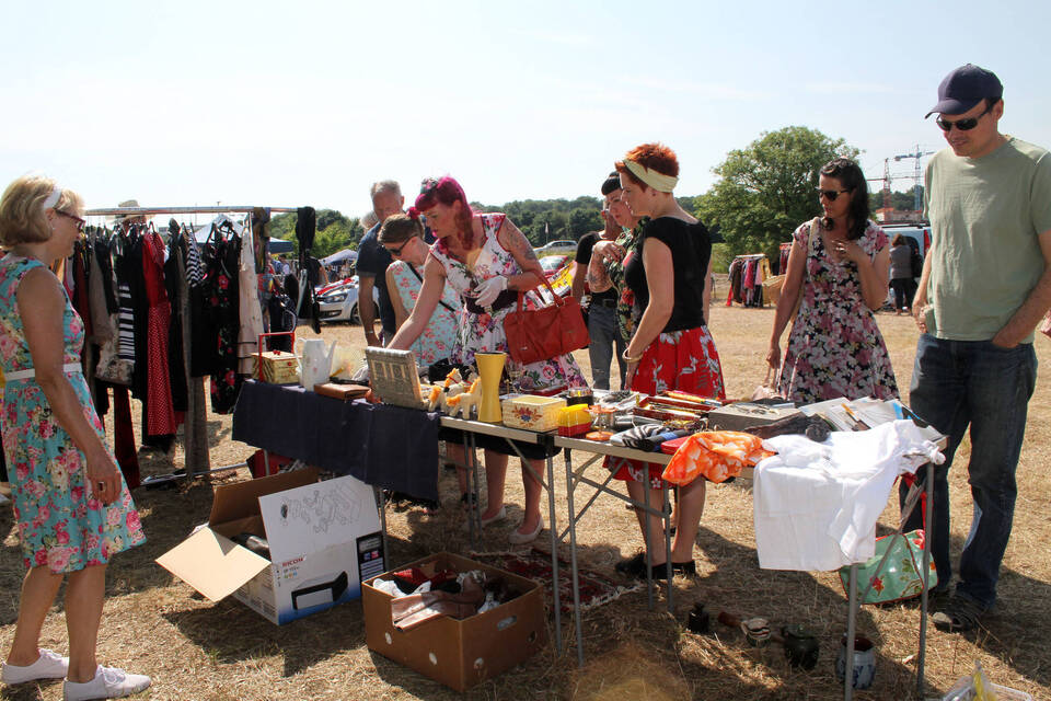 Am Leonardo-Hotel gab es einen Flohmarkt, teilweise mit Originalkleidung aus den Fünfzigern, darunter waren Kleider, Hosen, Ohrringe, Ketten, Armbänder, Schuhe oder Bücher. Wer genau hinschaute, der sah sogar einen Wendetoaster aus dieser Ära. Die Besucher flanierten von Stand zu Stand und probierten hie und da einige Sachen an. "Ich liebe und lebe diese Zeit, meine Wohnung ist im Stil der fünfziger Jahre eingerichtet", sagte Zoe Scarlett aus der Schweiz. Schon in der Kindheit habe sie mit ihren Eltern Oldtimertreffen oder Flohmärkte besucht, erzählte sie. Heute moderiert sie unter anderem eine Fünfziger-Jahre-Sendung in der Schweiz.