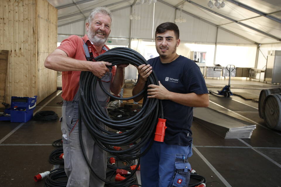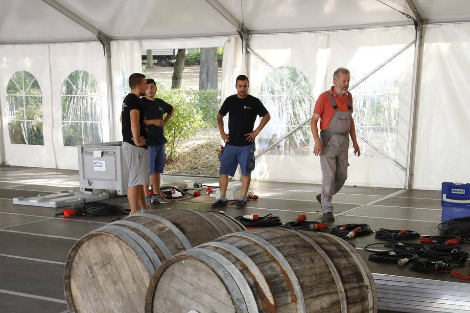 Im Zelt selbst wurden vor zwei Tagen die letzten Bodenplatten verlegt und die einzelnen Grillstationen und Getränkeausgaben eingerichtet. Seit drei Jahren hat dieses Zelt mit einem Fassungsvermögen von etwa 500 Personen die Eisweinhalle als Austragungsort der zahlreichen Veranstaltungen abgelöst. Auch in diesem Jahr sind es wieder die Dachsenfranz Festbetriebe, die sich um das leibliche Wohl der Gäste kümmern. Am Freitag werden dort ab 20 Uhr "Cracked Fire" auftreten.