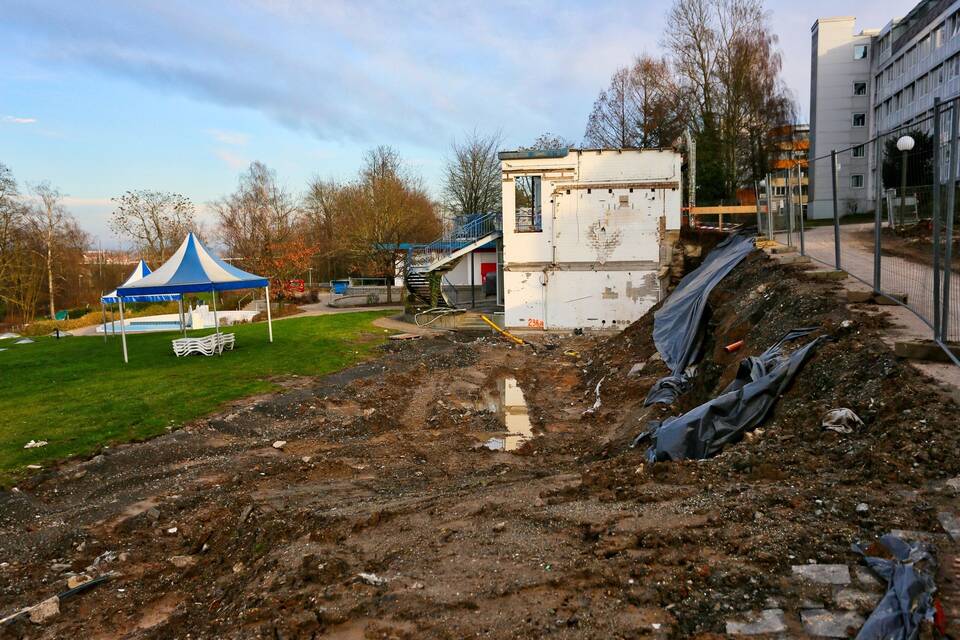 Bad Rappenau. (end) Dort, wo noch vor einigen Monaten die Umkleiden und Duschen mit Toiletten standen, gibt’s ein großes Loch: Der marode Umkleidebereich des Bad Rappenauer Freibads ist