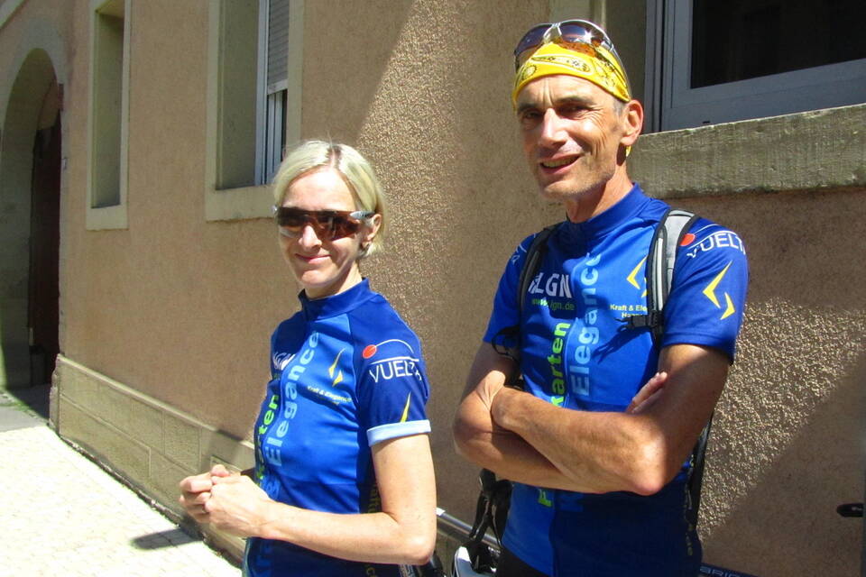 Auf den eigenen Naben zweier Rennräder kamen Stalling und seine Gattin Maren von Karlsruhe hier her - augenscheinlich die einzigen wirklichen Radsport-Kenner am Platz. Letztes Jahr haben sie das Gastspiel der Tour des France in Düsseldorf bereist, "mit der Bahn und mit dem Rad", allerdings. Den Kraichgau steuern die beiden Sportler öfter an: "Ein beliebtes Ziel", sagt er, "Bretten, Sulzfeld, Maulbronn, vielleicht mal nach Lauffen." Bevor’s die "kleine Strecke" zurück ging, machten sie einen Abstecher auf den Kartoffelmarkt.