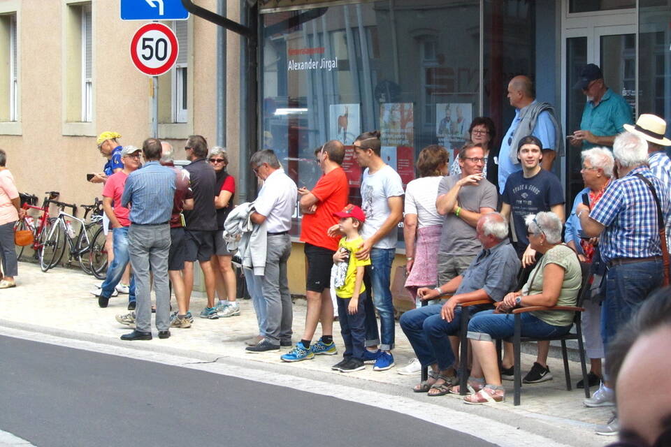 Bereits ab 13.30 Uhr füllt sich die Kreuzung: Da ist Hans Hoffmann aus Sinsheim, der sich die Tour "mal anschauen will, wenn wir schon mal da sind", da ist das Paar aus Leonberg - ebenfalls Kartoffelfest-Gäste. Ein Großteil der Versammelten nimmt das Spitzensport-Event im Vorübergehen mit, weil sich nun mal die Gelegenheit dazu bietet.