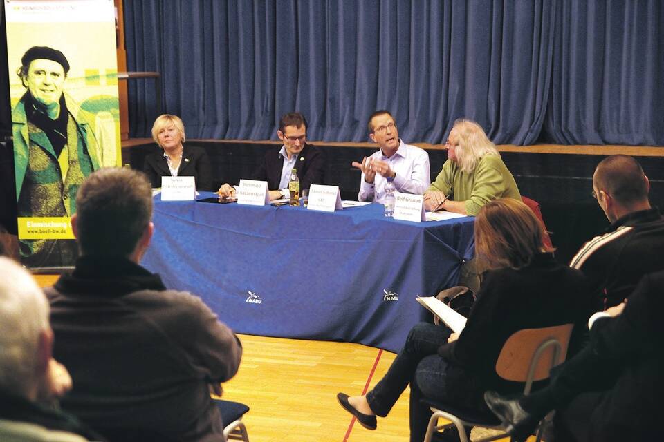 Sinsheim. (cbe) Es war nicht das durchschnittliche Publikum, dass zur Podiumsdiskussion zum Thema Elektromobilität im ländlichen Raum gekommen war. Das wurde deutlich, als auf die Frage, wer ein Elektroauto fahre, etwa zehn der 50 Zuhörer den Arm hoben. Dementsprechend gingen einige Diskussionen und Fragen bei der Veranstaltung, zu der der Nabu Sinsheim und die Heinrich-Böll-Stiftung eingeladen hatten, tief ins Detail.