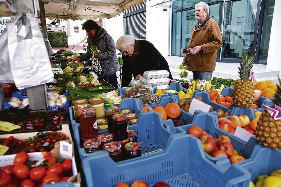 Der Schein trügt: Das bunte Angebot des Wochenmarkts kann nur einen kleinen Teil der Nahversorgung im Ort sicherstellen. Ältere Bürger sind darauf angewiesen, dass die "Dinge des täglichen Bedarfs" weiterhin in der Dorfmitte erhältlich sind. Foto: Christiane Barth