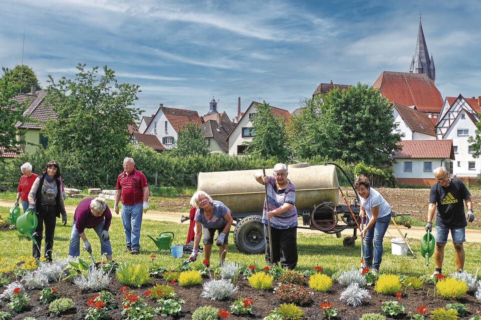 Interessant ist der Blick auf die Geschichte des Vereins: Als die Heimattage 2007 anstanden, wollte man die Bahnhofswiesen mit einem 120 Meter langen Blumenband aufhübschen, doch der Gemeinderat ließ die Idee aus Kostengründen platzen. Aufgeben war für Förster aber keine Option. Nachdem viele ihre Spendenbereitschaft signalisiert hatten, wurde der Verein gegründet. Schnell hatte man 13.000 Euro in der Kasse. Zur ersten Pflanzaktion krempelten mehr als 100 Bürger die Ärmel hoch und buddelten 5400 Blumen in die Erde. Volksfeststimmung mit spontanen Musikacts, Kaffee und Kuchen: "Mit so einem Ansturm hatten wir nicht gerechnet." Danach wurde jeweils im Frühjahr und Herbst neu gepflanzt, und drei Jahre später grüßte ein Wappen in den Stadtfarben. Für die Umsetzung der Projekte und Arbeitseinsätze fanden sich immer genügend Mitstreiter – Privatleute, Mitglieder anderer Vereine, der Feuerwehr oder des Bauhofs.