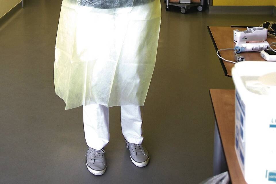 > Schutzausrüstung ist immer wieder ein Thema: Noch ist sie ausreichend – das sagen alle Ärzte und Krankenpfleger. Doch wann wie viel Nachschub kommt, ist ungewiss, man hangele sich durch. Und manche Krankenschwester gesteht, dass sie Angst hat, dass es irgendwann keine Schutzausrüstung mehr gibt. Doch auch das Tragen und Anziehen kostet Mühe und Zeit: Rund fünf Minuten brauchen Ärzte oder Pfleger, um die komplette Montur anzulegen. Sie besteht aus Maske, Schutzkittel, Handschuhen, Kopfhaube und Schutzbrille. Erst dann gehen sie in das Zimmer eines isolierten Patienten. Abgelegt wird die Schutzausrüstung in einer bestimmten Reihenfolge, zwischen einzelnen Schritten müssen die Hände desinfiziert werden. Wer längere Zeit eine der höherwertigen Masken trägt, spürt zudem die Einschränkungen: Das Atmen fällt schwerer, wer eine Brille trägt, dem beschlagen beim Ausatmen die Gläser. Und die Gummibänder hinter den Ohren sorgen bei einigen für Kopfschmerzen.