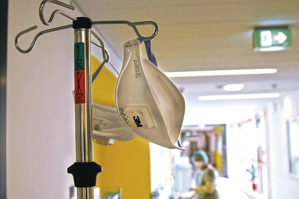 Sinsheim. Es sind vor allem die Masken, die auffallen. Nicht jene, die jeder Mitarbeiter vor Mund und Nase trägt. Sondern die, die an mehreren Infusionsständern aufgehängt den Gang zieren. Auf jeder steht ein anderer Vorname. Was ein wenig nach moderner Kunst aussieht, ist Ausdruck von Sparsamkeit in besonderen Zeiten: Selbst auf der Corona-Isolierstation werden die momentan so begehrten und deshalb knappen Atemschutzmasken des Typs FFP2 nach dem Benutzen nicht sofort weggeworfen. Weil unklar ist, ob und wann genügend neue kommen, verwenden Ärzte und Krankenschwestern ihre Maske den ganzen Tag.