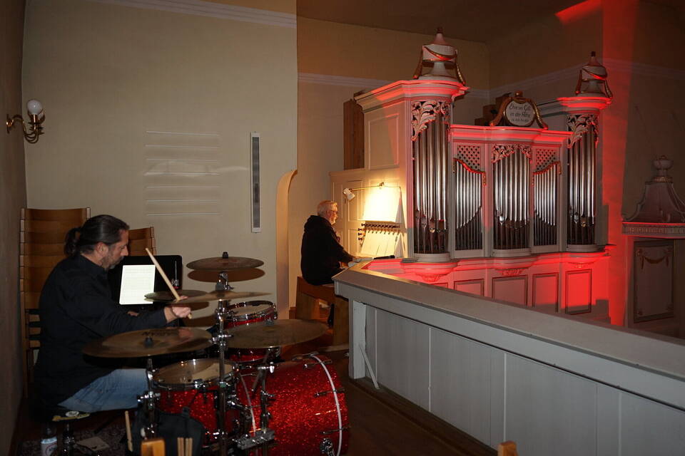 Das "Symphonic Rock Duo" begeistert die Besucher mit Klängen von Orgel und Schlagzeug. Doch es gibt auch Herausforderungen.
