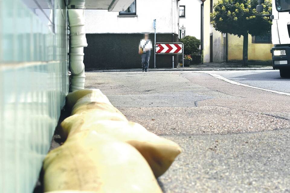 Mit Sandsäcken schützten die Epfenbacher Bürger in der Ortsmitte ihre Keller. Foto: Christiane Barth