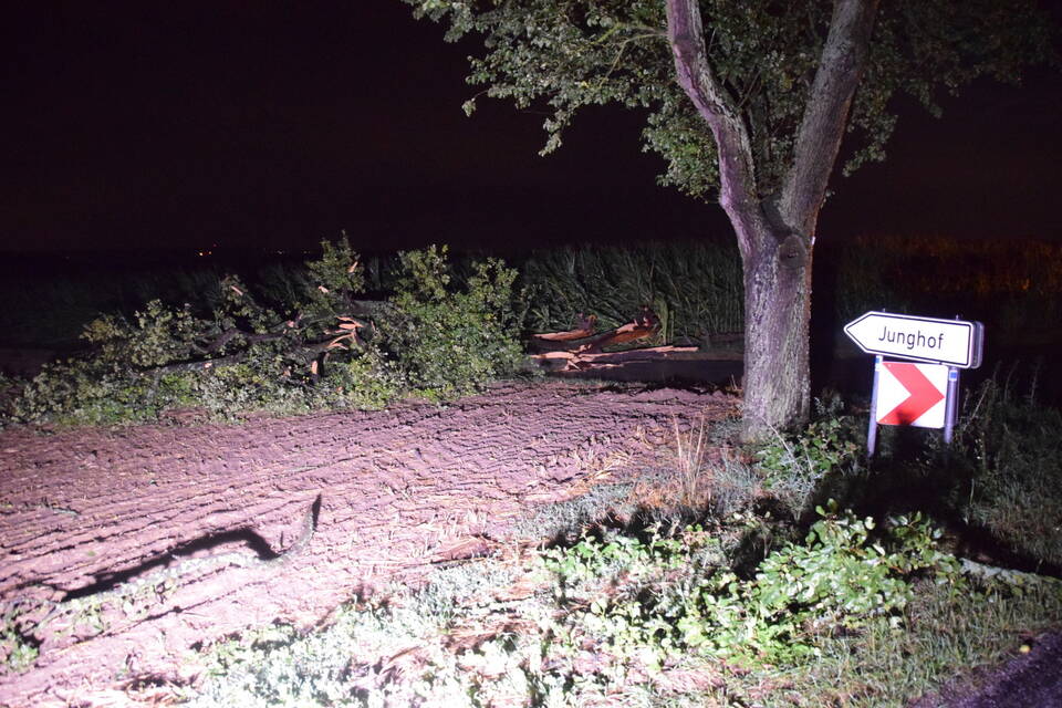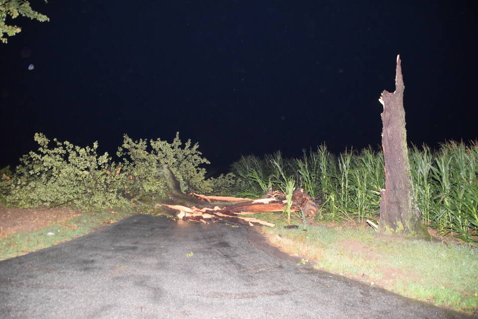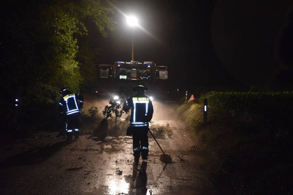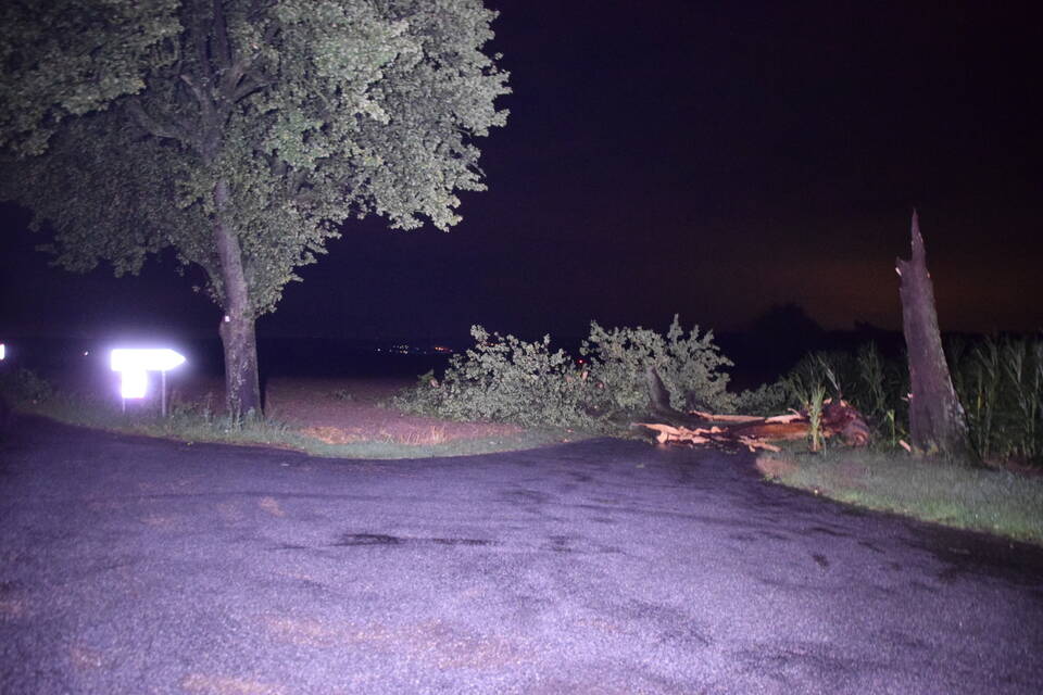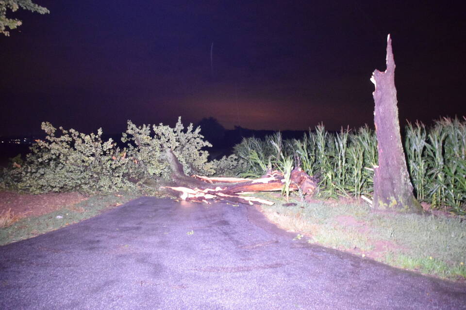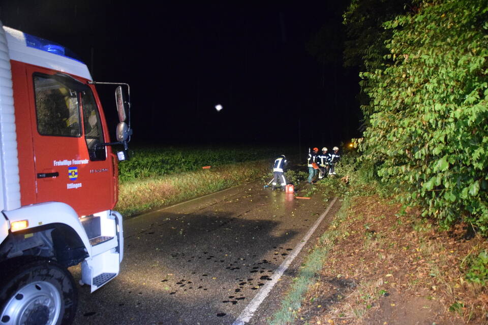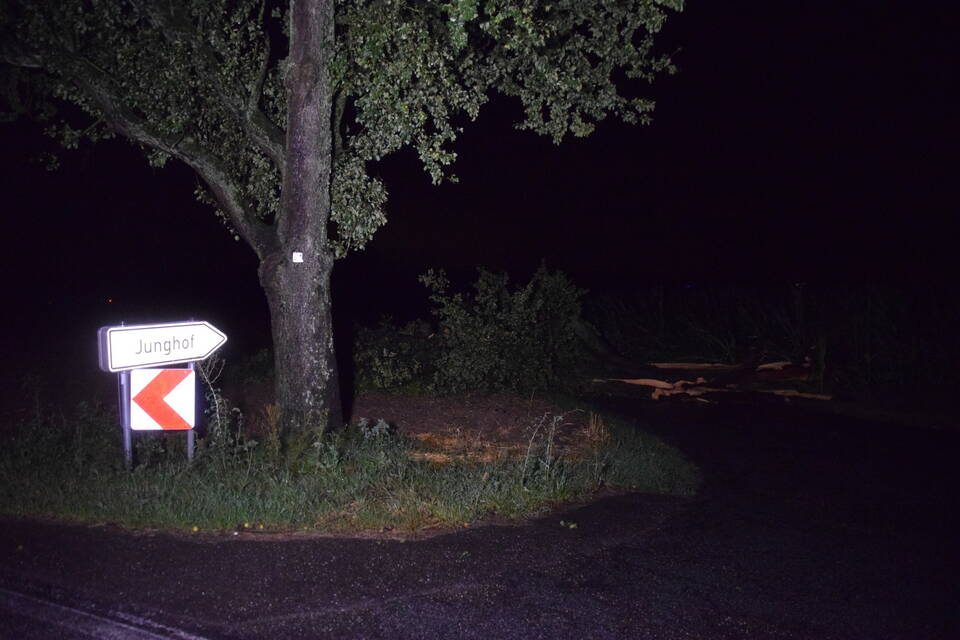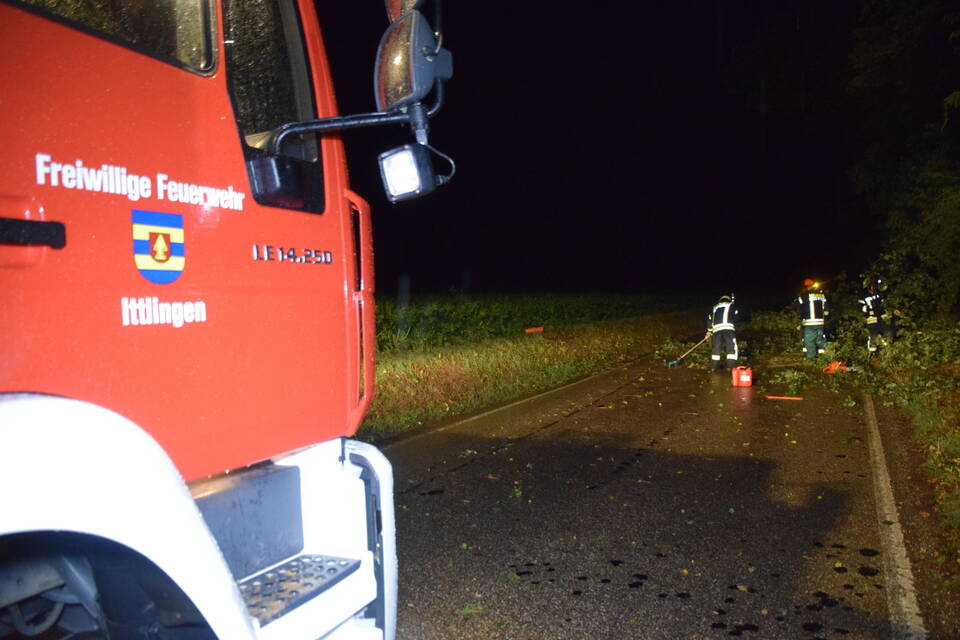 Besonders betroffen hingegen war der Landkreis Heilbronn: Aufgrund der Vielzahl an Notrufen rief die integrierte Leitstelle zeitweise den "Unwettermodus" aus. Die Unmengen an Einsatzaufträgen erhielten die Feuerwehren direkt per E-Mail und Fax in ihre Gerätehäuser gesandt. "Der ganze Landkreis wurde wie ein Schlag getroffen, hier sind alle am arbeiten", meint ein Feuerwehrmann. Die Feuerwehr Ittlingen war bis in die späte Nacht im Einsatz. Von umgestürzten Bäumen über abgedeckte Dächer bis hin zu abgerissenen Kaminen war alles dabei. Den langwierigsten Einsatzauftrag des Abends erhielten die Wehrmänner und Frauen durch Zufall auf einer Einsatzfahrt. "Wir waren gerade auf dem Weg zu einem Unwettereinsatz, als wir an der verschlossenen Bahnschranke standen und nicht weiterkamen", berichtet Feuerwehrkommandant Florian Hernik vor Ort gegenüber der RNZ.