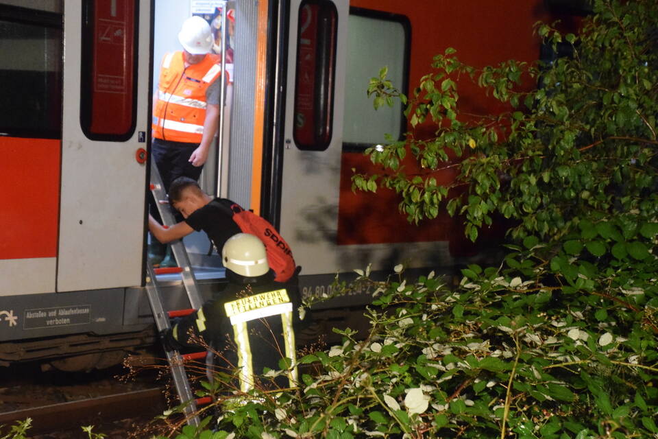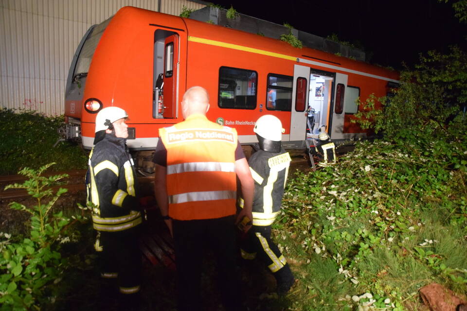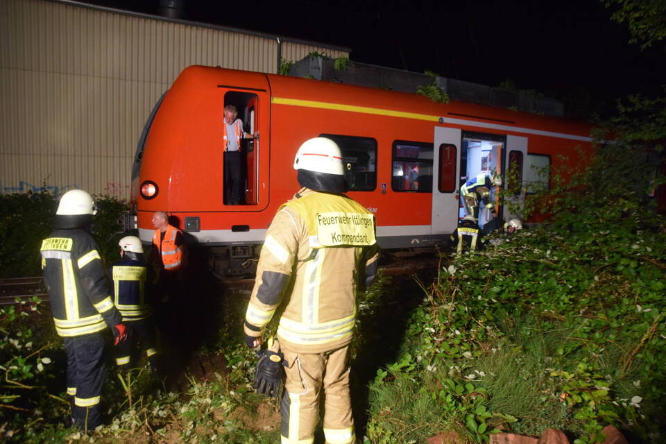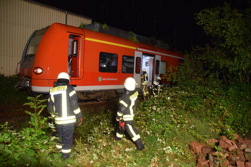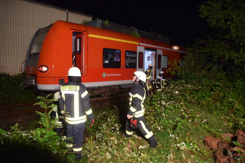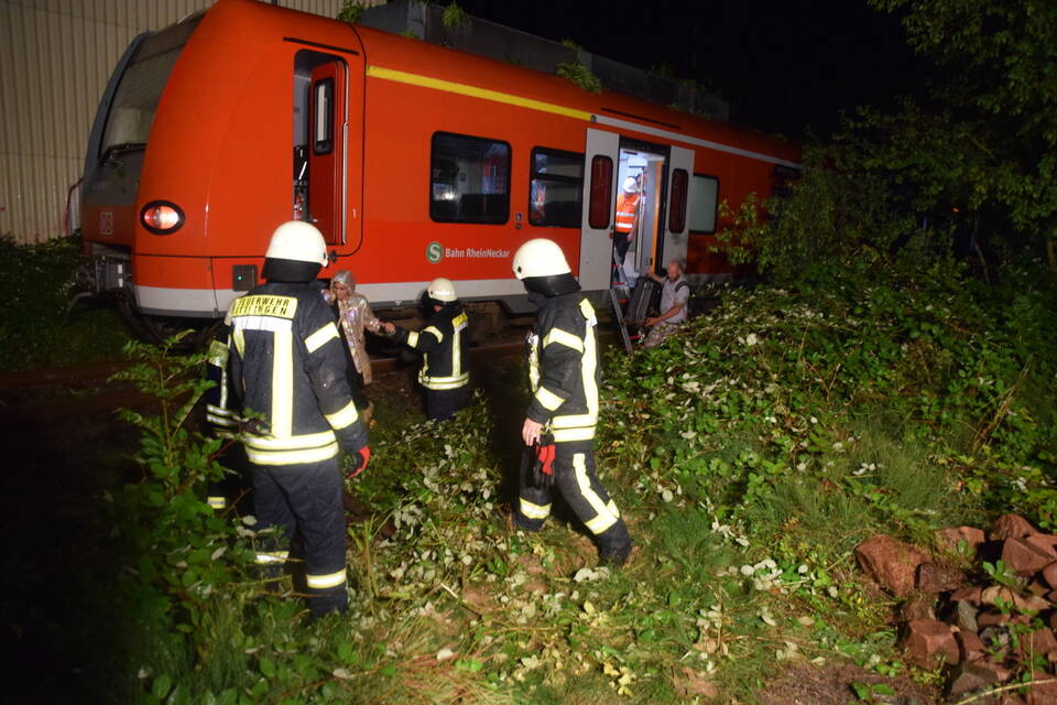 Ein Regionalzug der Linie S5 Richtung Eppingen war kurz nach einem beschrankten Bahnübergang gegen einen auf die Gleise ragenden Baum gefahren. Dieser war zuvor umgeknickt und hatte sich auf der Oberleitung verkeilt. Die rund 25 Fahrgäste sowie der Zugführer konnten jedoch nicht einfach den Zug verlassen. "Da die Möglichkeit bestand, dass die Oberleitung durch den Baum abgerissen wurde, musste diese zunächst stromlos geschaltet werden, zu groß die Gefahr, dass die Passagiere beim Aussteigen einen lebensgefährlichen Stromschlag erleiden würden", so Hernik weiter.