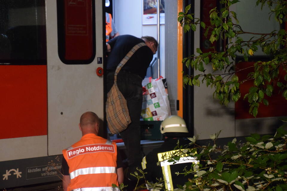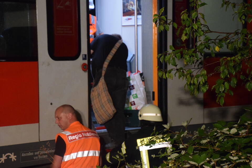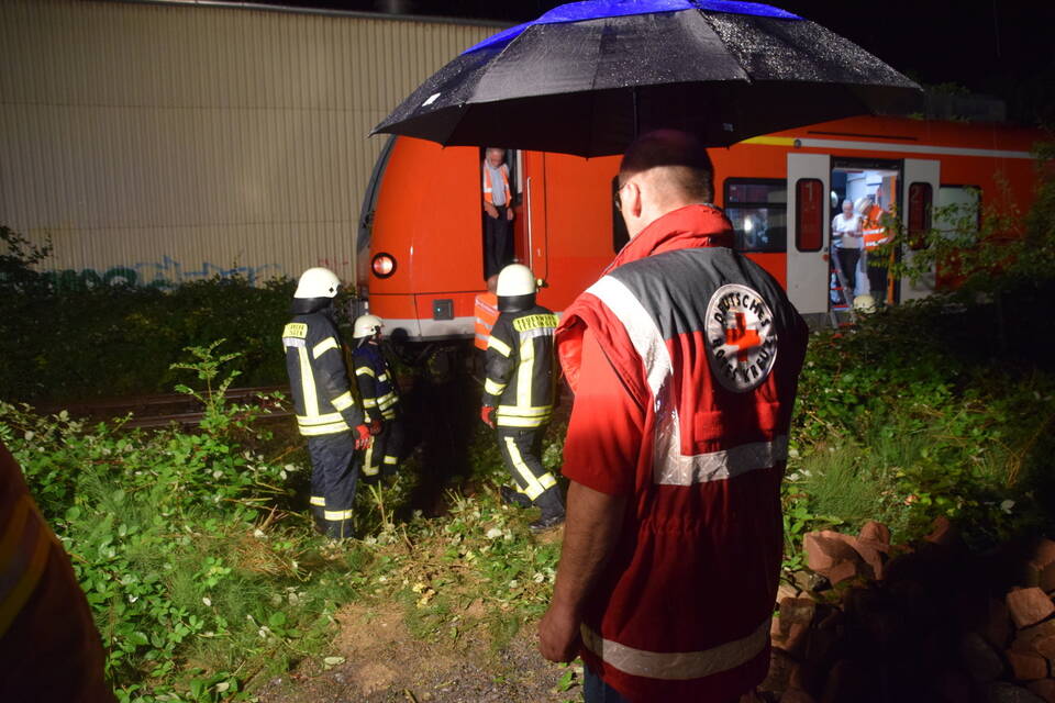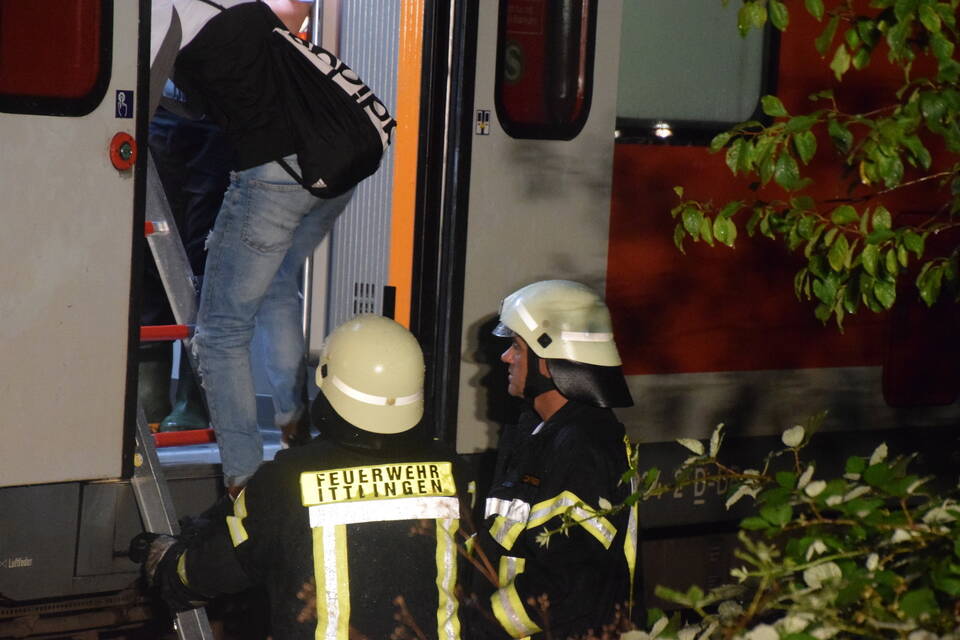 Nach rund einer Stunde war der DB-Notfallmanager eingetroffen und erdete die Gleise. Die Ittlinger Feuerwehr befreiten mittels Steckleiter die 25 Zugpassagiere. Mit offenen Schuhen läuft eine Frau durch den zu Schlamm gewordenen Boden, hin zu den Betreuern des DRK und berichtet von den Geschehnissen: "Wir haben einen lauten Knall gehört und der Zug kam plötzlich zum Stehen", so die betagte Dame gegenüber der RNZ.