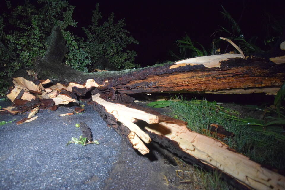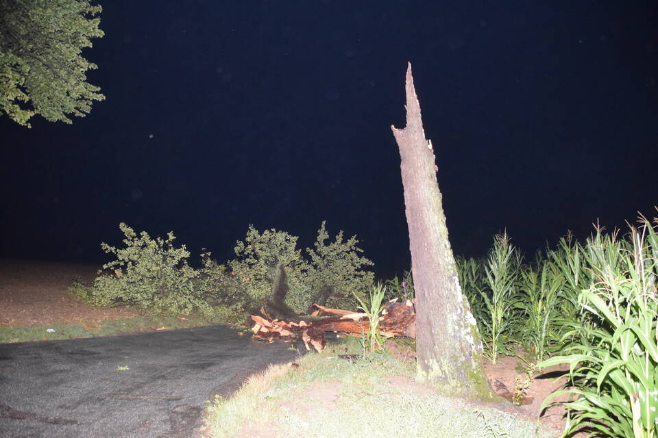 Während manche Orte verschont blieben, wütete das Unwetter über einigen Gemeinden und richtete zahlreiche Schäden an. Sinsheim samt Teilorten blieb weitestgehend verschont. Den ersten Notruf erhielt die Feuerwehr aus Hilsbach gegen 20.40 Uhr - ein Blitz soll in Bäume in der Wollbachstraße eingeschlagen und diese entzündet haben. Bei Erkundung durch die Hilsbacher Wehrleute war allerdings weder von umgefallenen Bäumen, noch von einem Feuer etwas zu sehen.